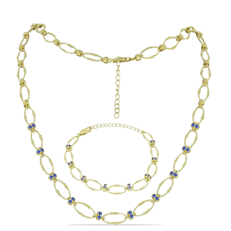 Pozlacená Stříbrná Sada s Tanzanitem ( Náhrdelník+Náramek )