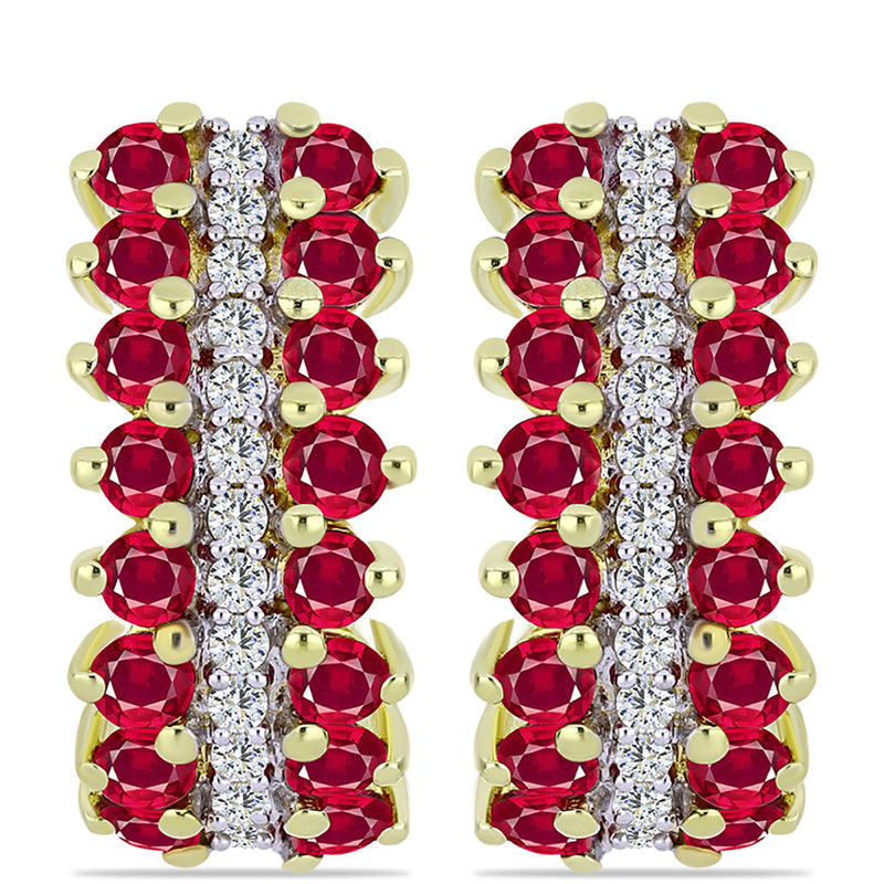 Pozlacené Stříbrné Náušnice s Madagaskarským Rubínem a Bílým Topazem