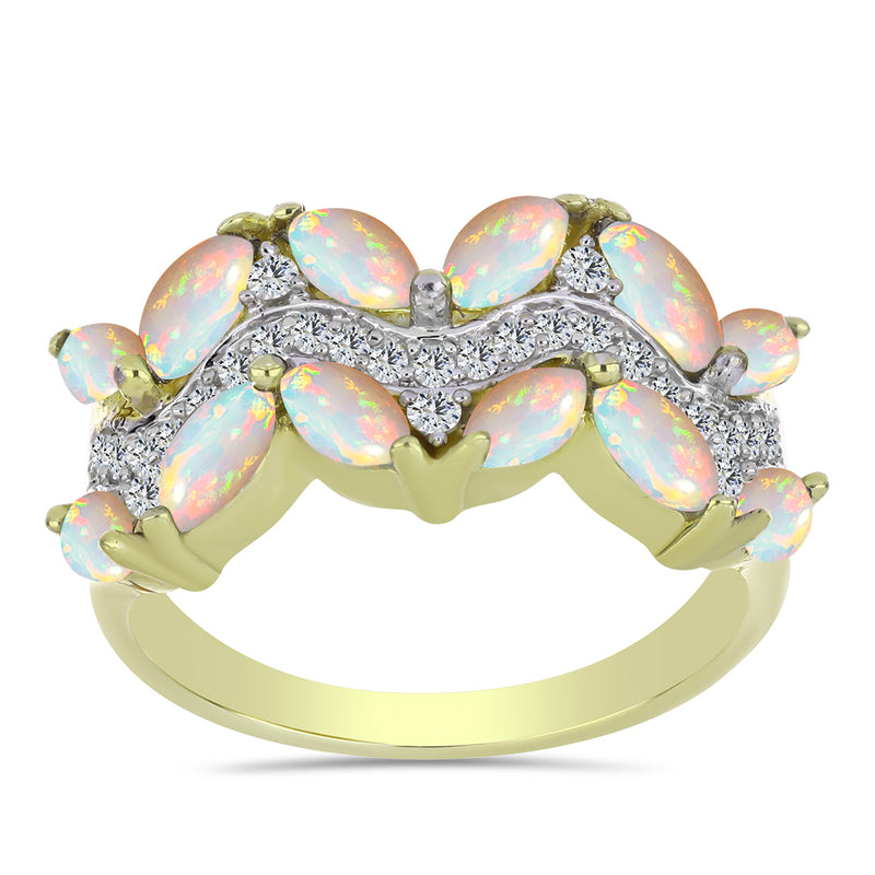 Pozlacený Stříbrný Prsten s Etiopským Opálem z Lega Dembi a Bílým Topazem