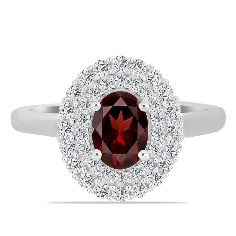 Stříbrný Prsten s Bartonským Granátem a Bílým Topazem