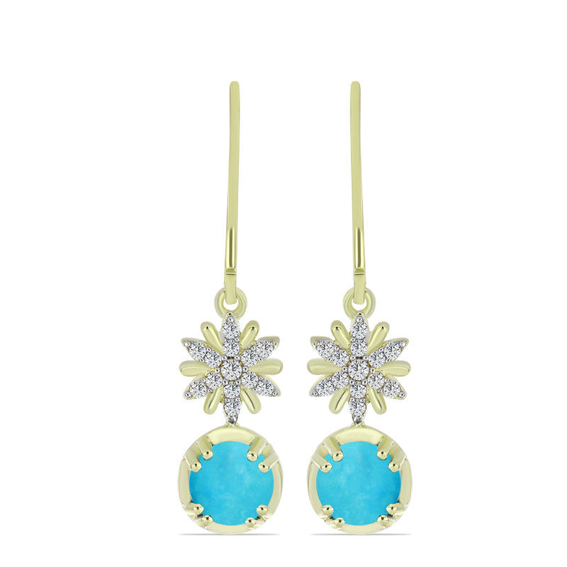 Pozlacené Stříbrné Náušnice s Tyrkysem Sleeping Beauty a Bílým Topazem