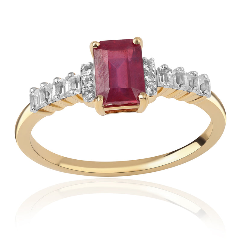 Pozlacený Stříbrný Prsten s Madagaskarským Rubínem a Bílým Topazem