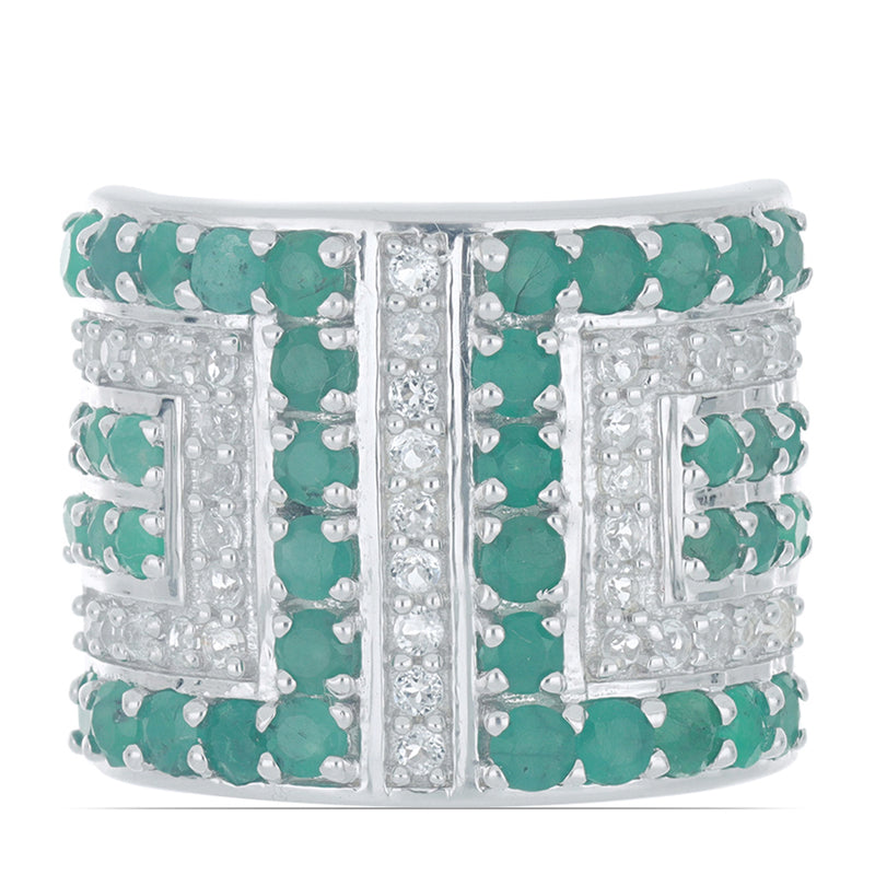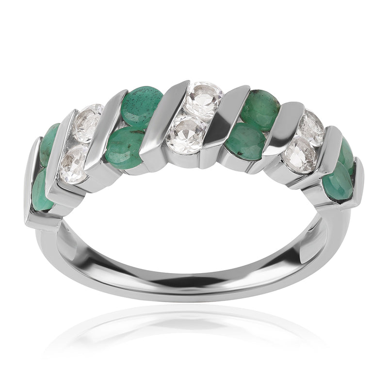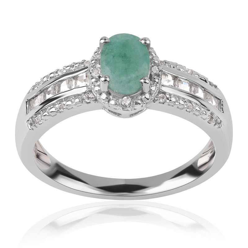 Stříbrný Prsten s Brazilským Smaragdem a Bílým Topazem