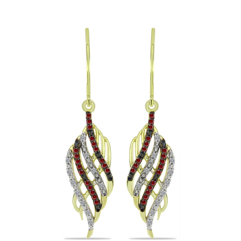 Pozlacené Stříbrné Náušnice s Červeným Diamantem a Bílým Diamantem