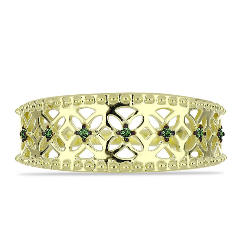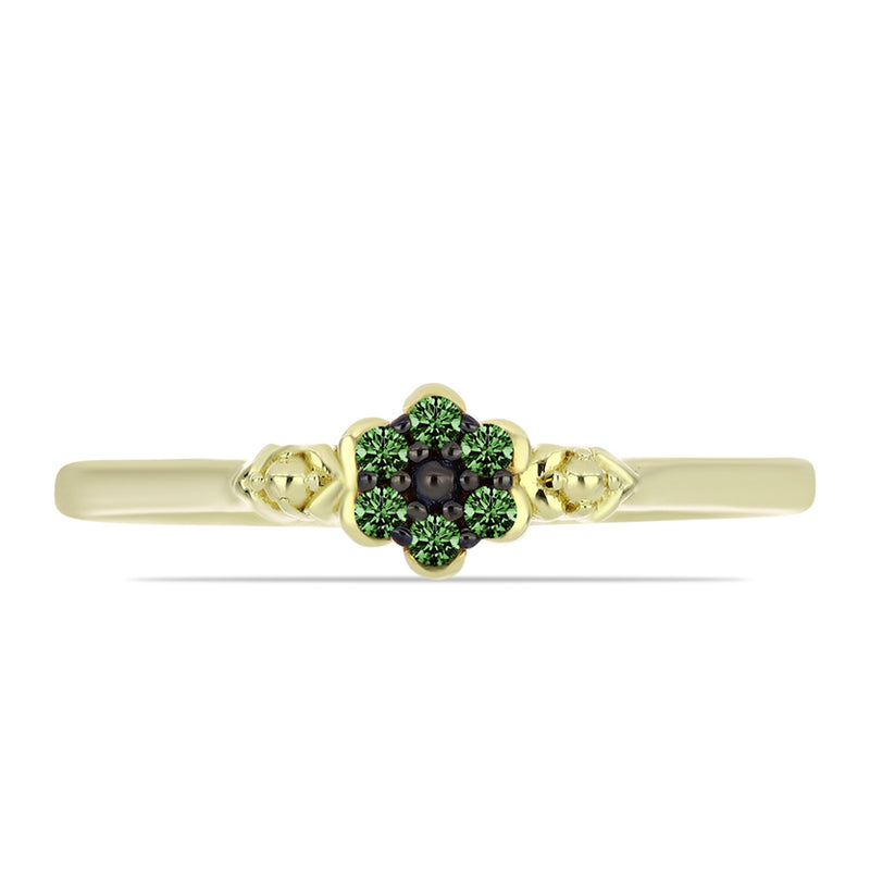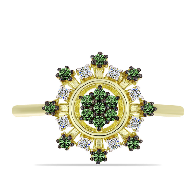 Pozlacený Stříbrný Prsten se Zeleným Diamantem