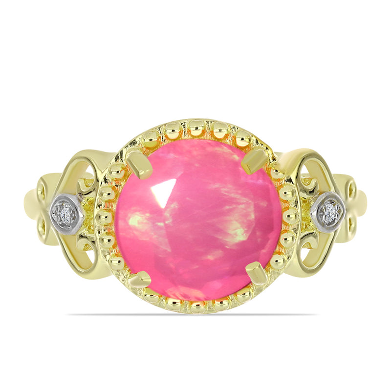 Pozlacený Stříbrný Prsten s Růžovým Etiopským Opálem z Lega Dembi a Bílým Topazem