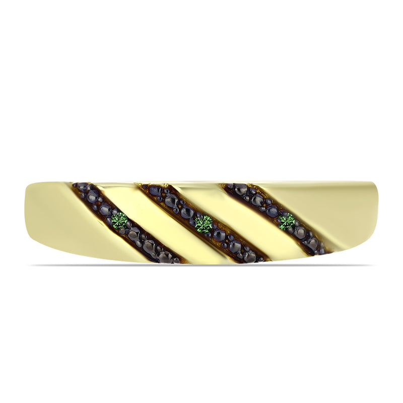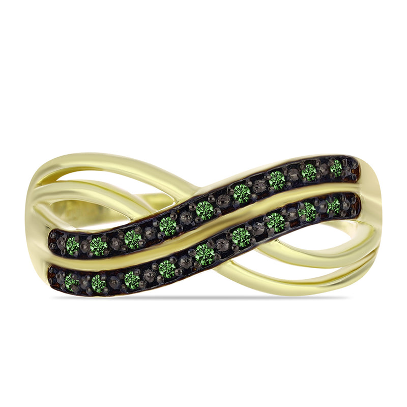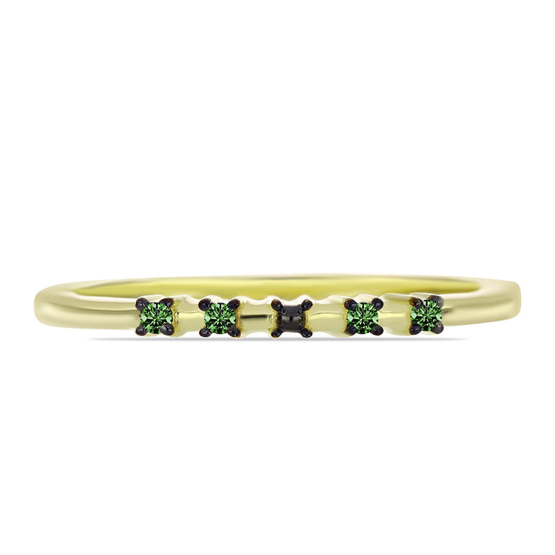 Pozlacený Stříbrný Prsten se Zeleným Diamantem a Bílým Diamantem