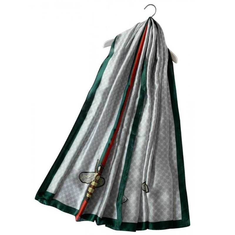 Hedvábná šála-šátek, 90 cm x 180 cm, Včelí vzor, Stříbrně šedá