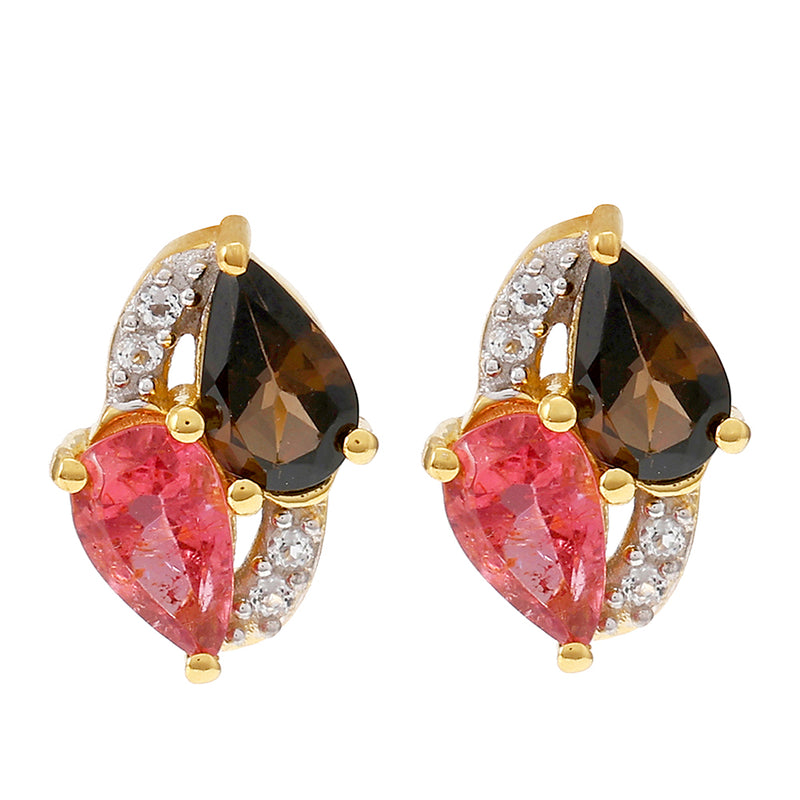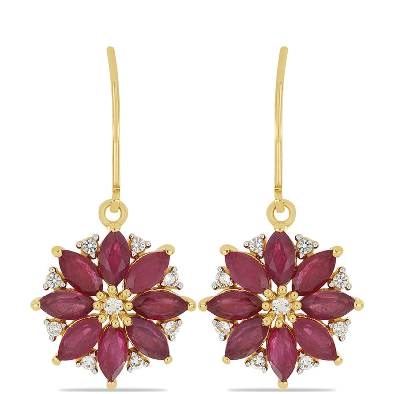 Pozlacené Stříbrné Náušnice s Madagaskarským Rubínem a Bílým Topazem