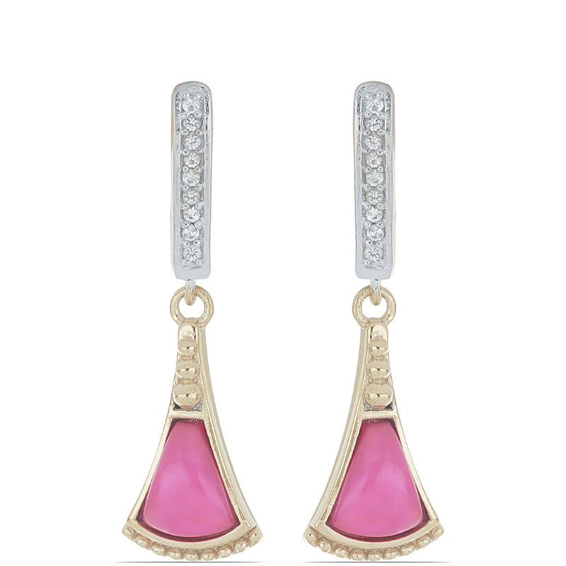 Pozlacené Stříbrné Náušnice s Růžovým Opálem z Lega Dembi a Bílým Topazem