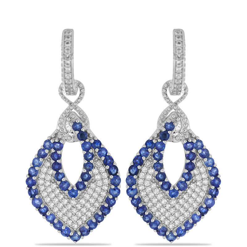 Stříbrné Náušnice s Australským Modrým Safírem a Bílým Topazem