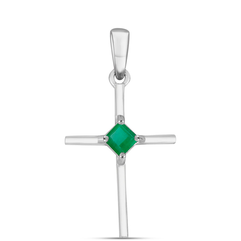 Kříž Stříbrný Přívěsek s Brazilským Smaragdem
