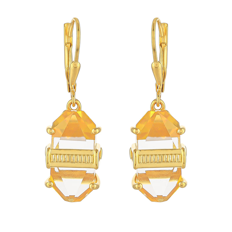 Pozlacené Stříbrné Náušnice s Americkým Ohnivým Opálem a Optickým Křemenem