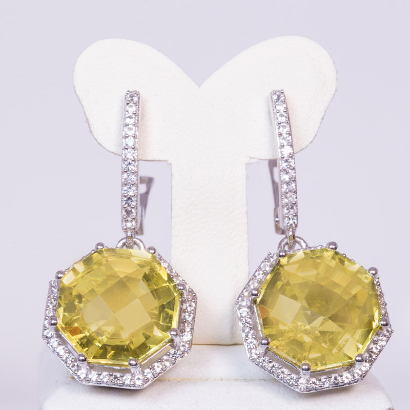 Stříbrné Náušnice s Umělým Diasporem a Bílým Topazem