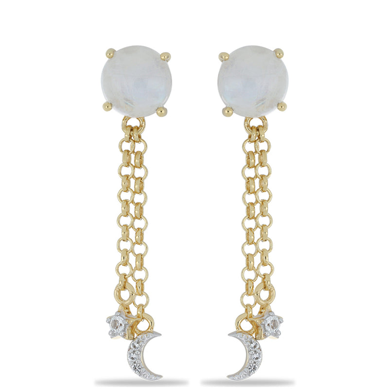 Pozlacené Stříbrné Náušnice s Duhovým Měsíčním Kamenem a Bílým Topazem