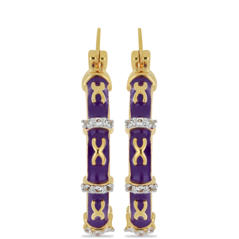 Pozlacené Stříbrné Náušnice se Smaltem a Bílým Topazem