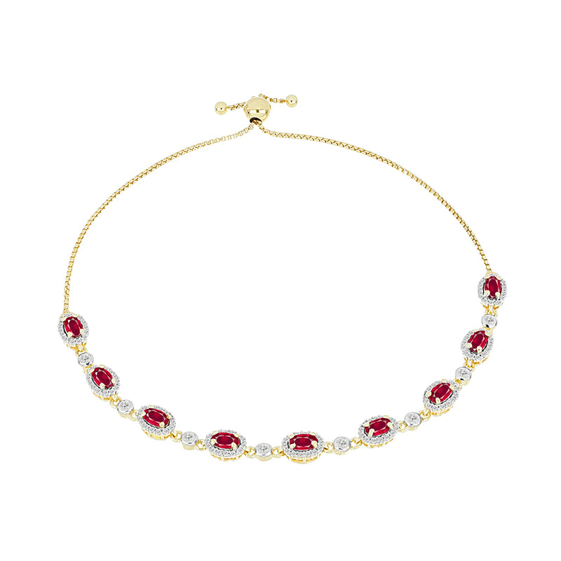 Pozlacený Stříbrný Náramek s Madagaskarským Rubínem a Bílým Topazem