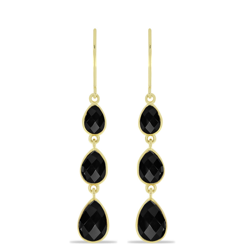 Pozlacené Stříbrné Náušnice s Černým Onyxem