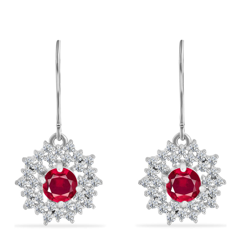 Stříbrné Náušnice s Madagaskarským Rubínem a Bílým Diamantem