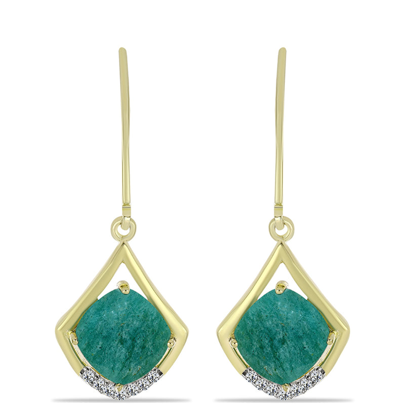 Pozlacené Stříbrné Náušnice s Amazonitem a Bílým Topazem