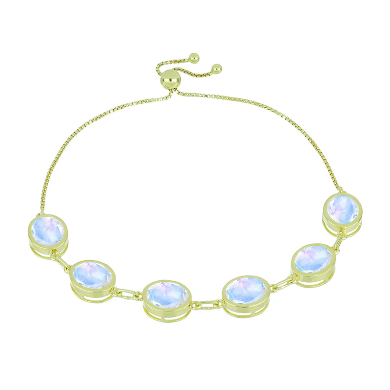 Pozlacený Stříbrný Náramek s Duhovým Měsíčním Kamenem