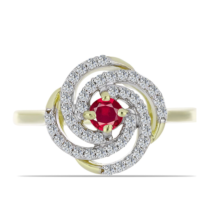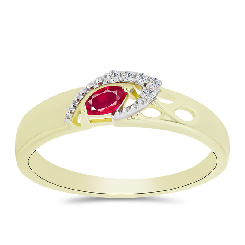 Pozlacený Stříbrný Prsten s Madagaskarským Rubínem a Bílým Zirkonem