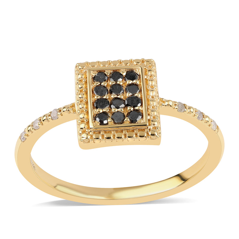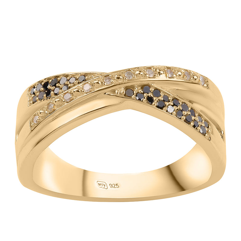 Pozlacený Stříbrný Prsten s Černým Diamantem a Bílým Diamantem