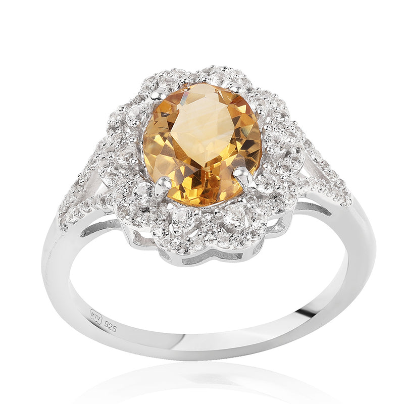 Stříbrný Prsten s Brazilským Citrínem tř.AA a Bílým Topazem