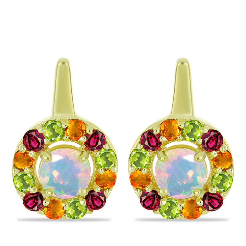 Pozlacené Stříbrné Náušnice s Welo opálem a Chakra Turmalínem