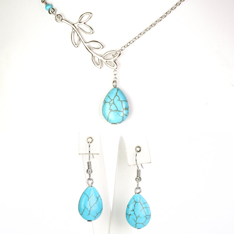 Pozlacená Slitinová Sada s Tyrkysem ( Náhrdelník+Náušnice )
