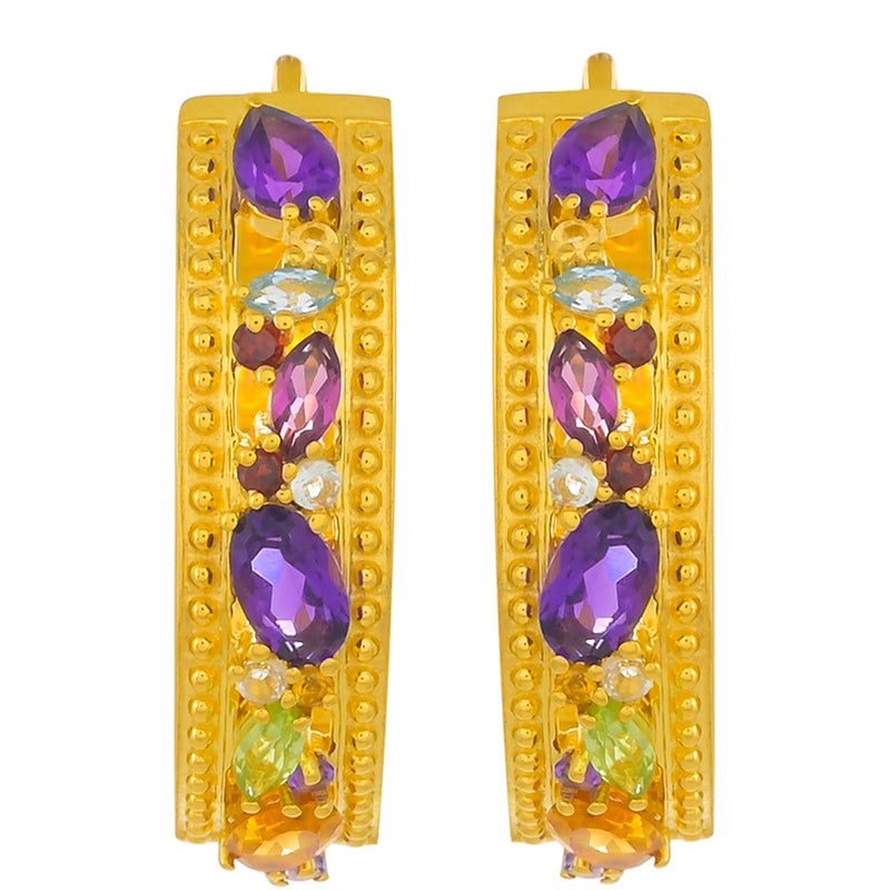 Pozlacené Stříbrné Náušnice s Africkým Ametystem a se Zeleným Ametystem
