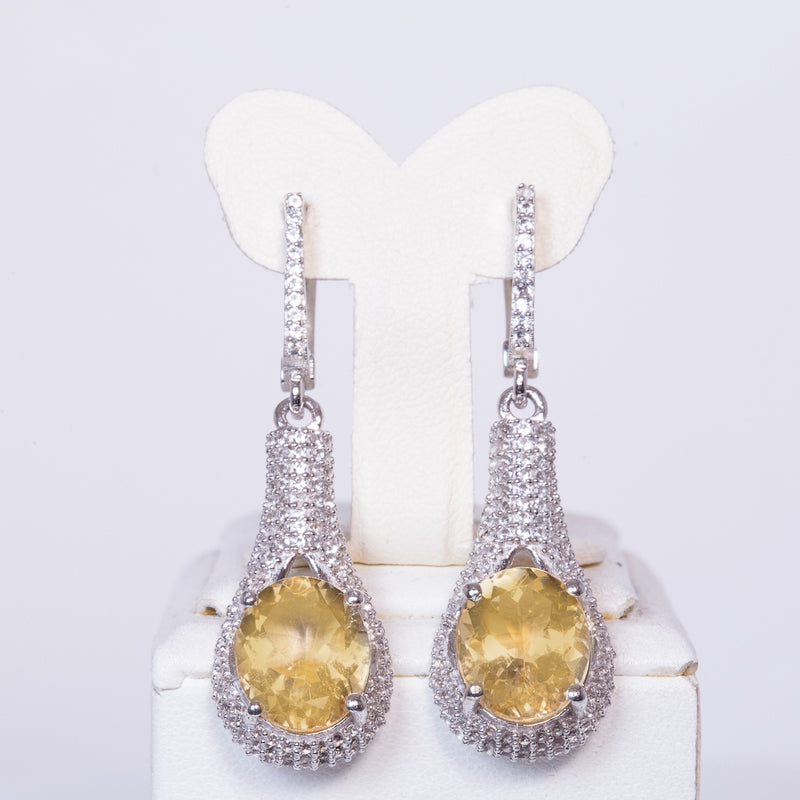 Stříbrné Náušnice s Citronovým Topazem a Bílým Topazem