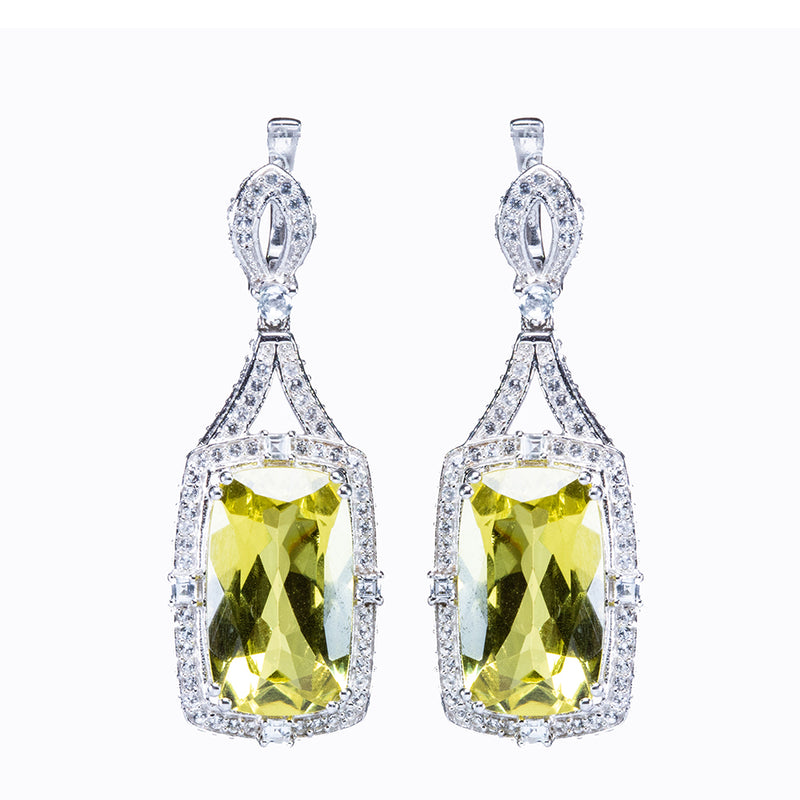 Stříbrné Náušnice s Uralským Citrínem a Bílým Topazem
