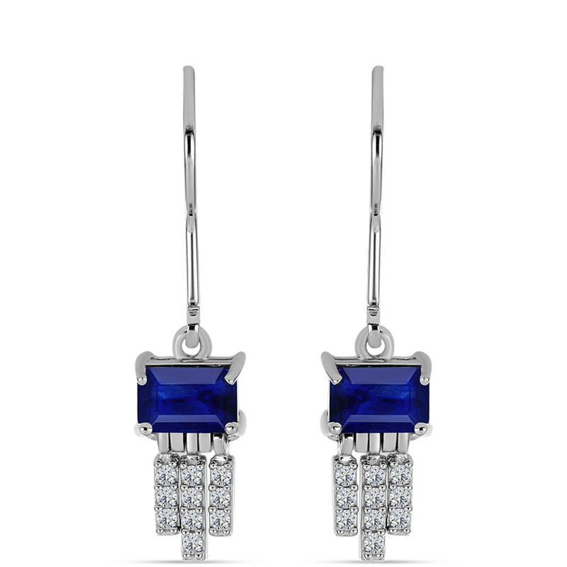Stříbrné Náušnice s Australským Modrým Safírem a Bílým Topazem