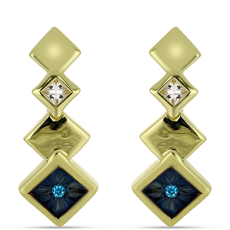 Pozlacené Stříbrné Náušnice s Modrým Diamantem a Bílým Topazem