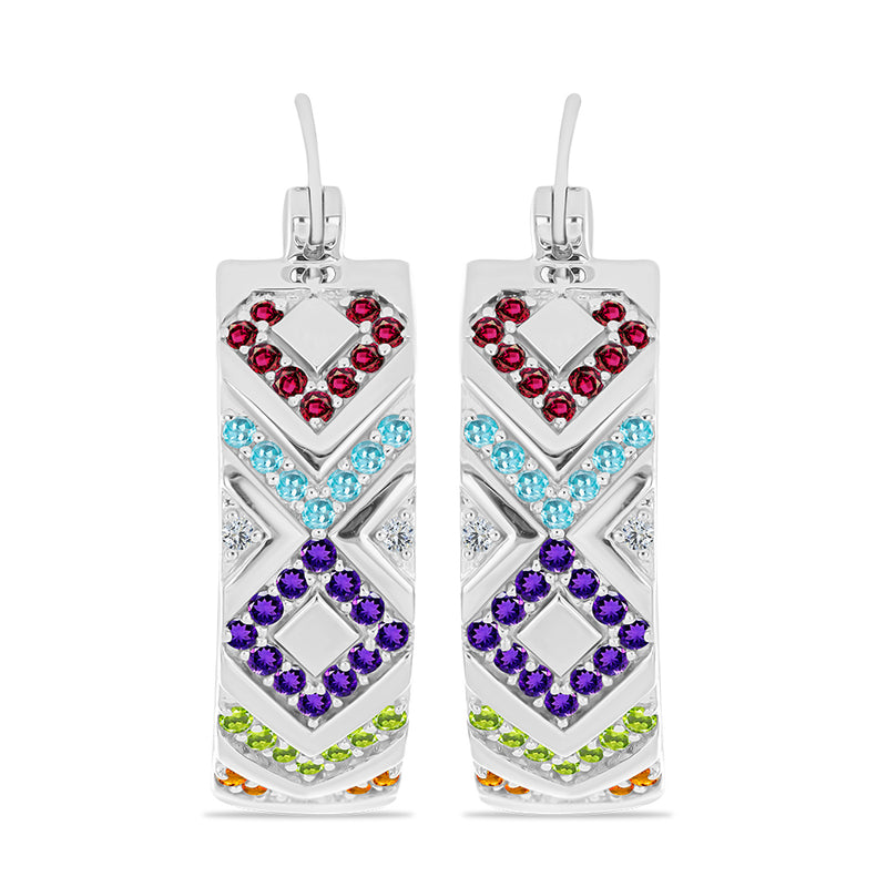 Stříbrné Náušnice s Marockým Ametystem a Čchang-pajským Peridotem