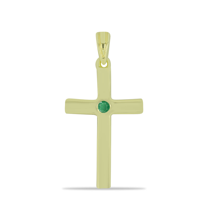 Kříž Pozlacený Stříbrný Přívěsek s Brazilským Smaragdem