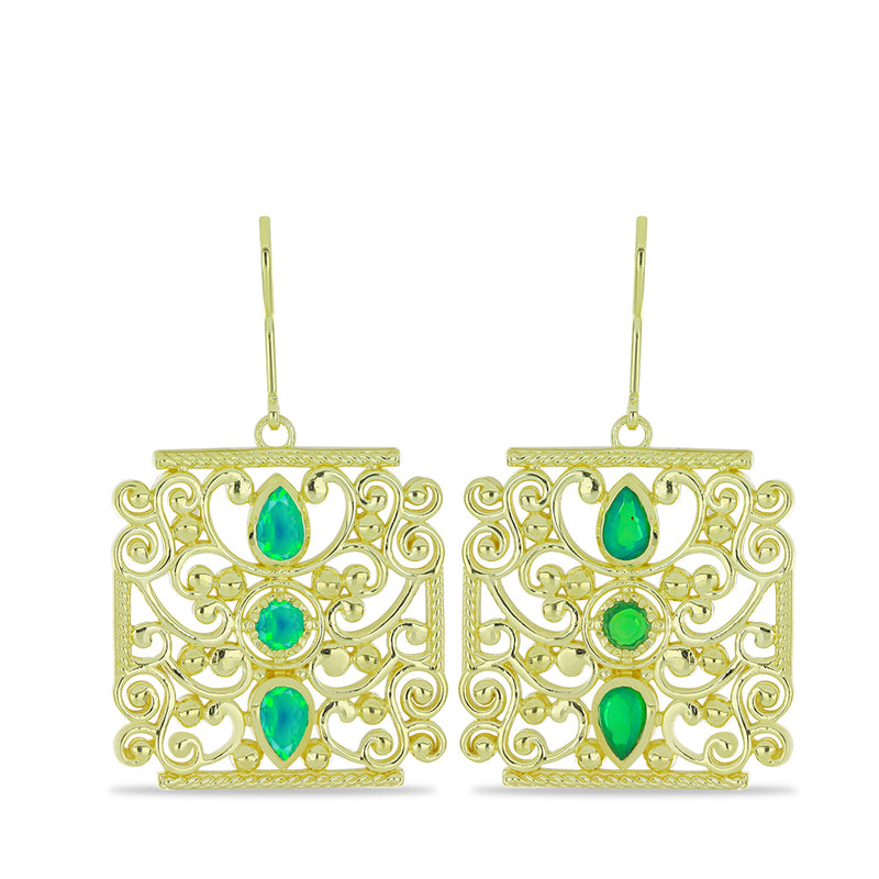 Pozlacené Stříbrné Náušnice se Zeleným Etiopským Opálem z Lega Dembi