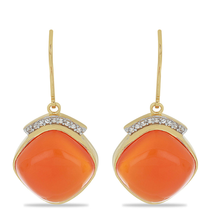 Pozlacené Stříbrné Náušnice s Karneolem z Tagebau a Bílým Topazem