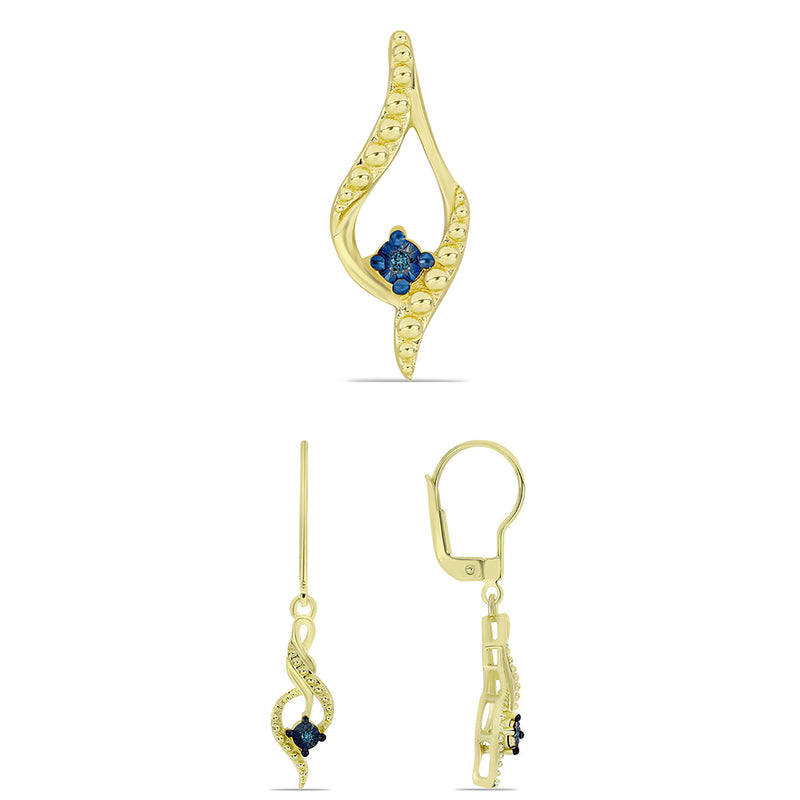 Pozlacená Stříbrná Sada s Modrým Diamantem ( Náušnice+Přívěsek )
