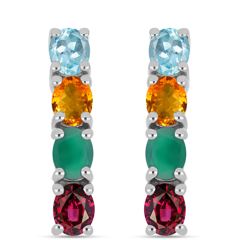 Stříbrné Náušnice se Zeleným Achátem a Citrínem
