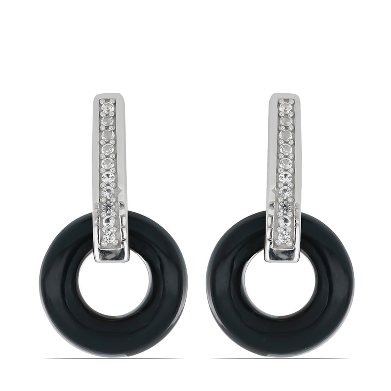 Stříbrné Náušnice s Černým Suwarským Onyxem a Bílým Topazem