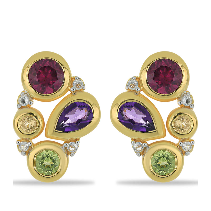 Pozlacené Stříbrné Náušnice s Rhodolitovým Granátem z Minas Moatize a Uralským Citrínem