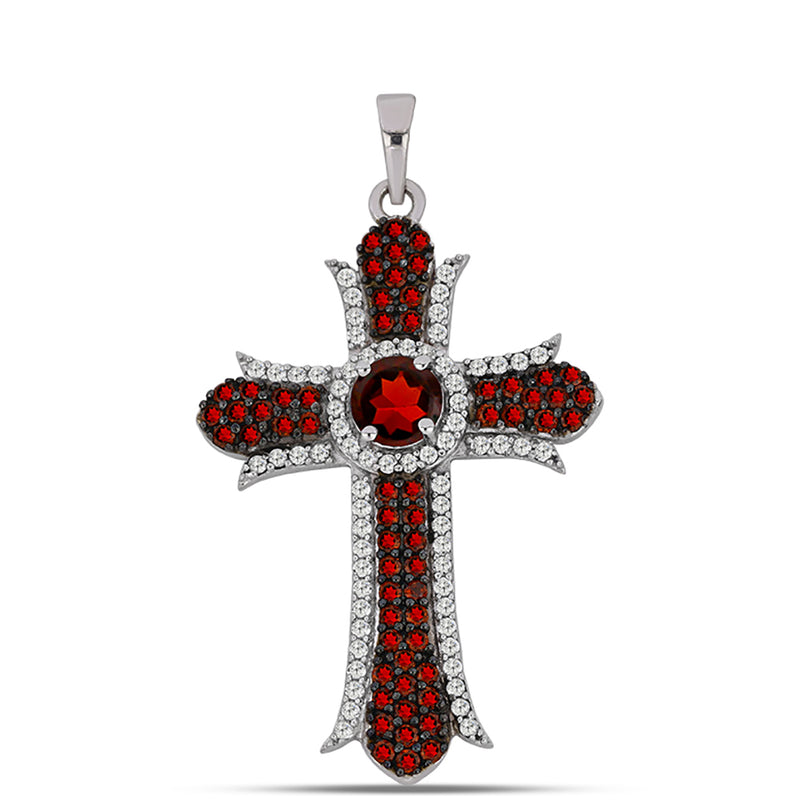 Kříž Stříbrný Přívěsek s Bartonským Granátem a Bílým Topazem