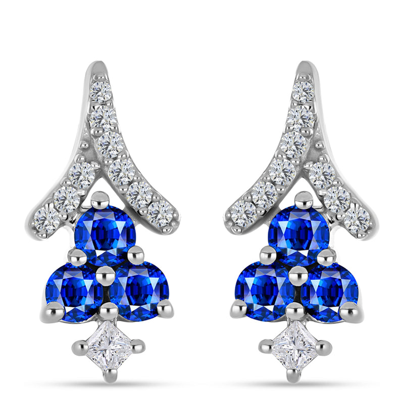 Stříbrné Náušnice s Australským Modrým Safírem a Bílým Topazem