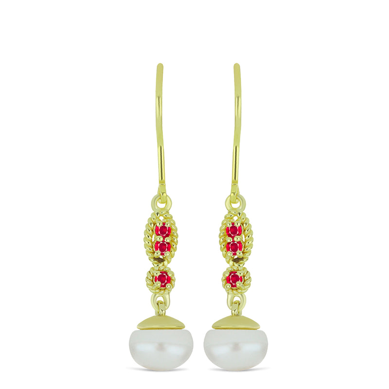 Pozlacené Stříbrné Náušnice s Bílou Sladkovodní Perlou a Madagaskarským Rubínem