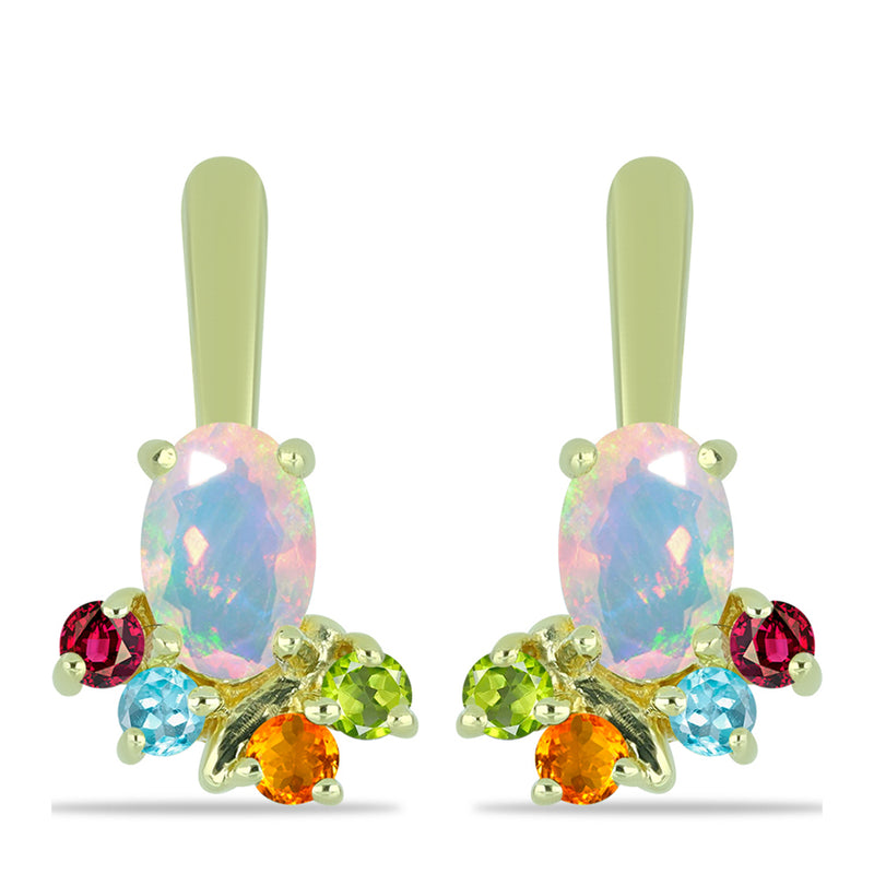 Pozlacené Stříbrné Náušnice s Welo opálem a Chakra Turmalínem