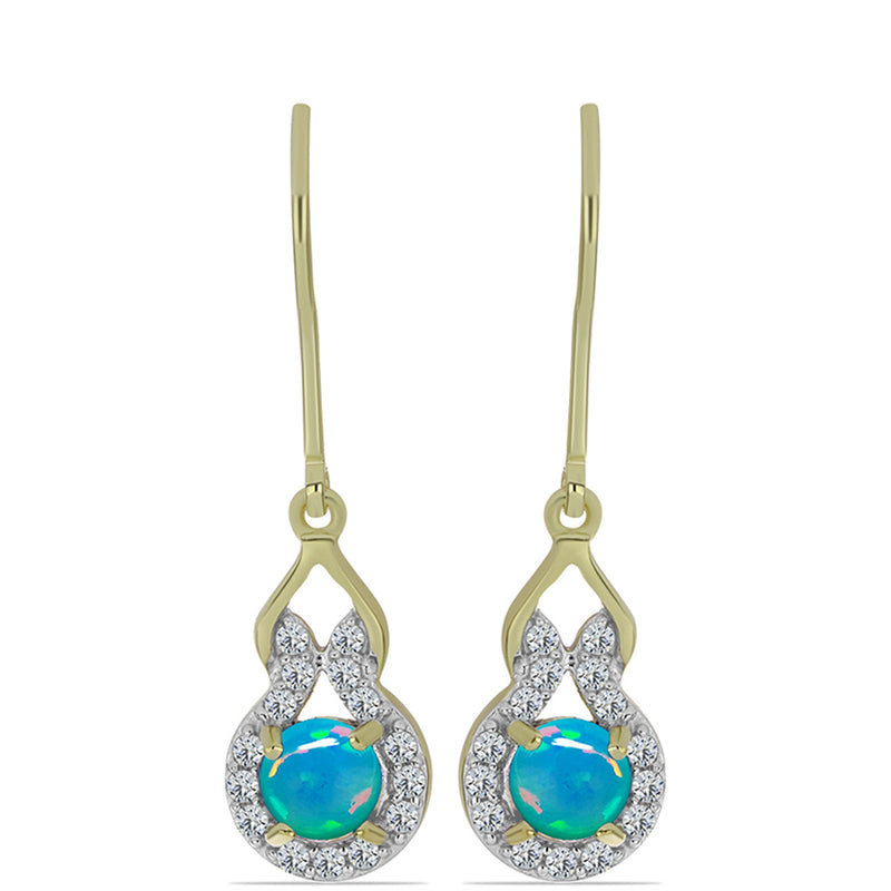 Pozlacené Stříbrné Náušnice s etiopským Paraiba modrým opálem a Bílým Topazem