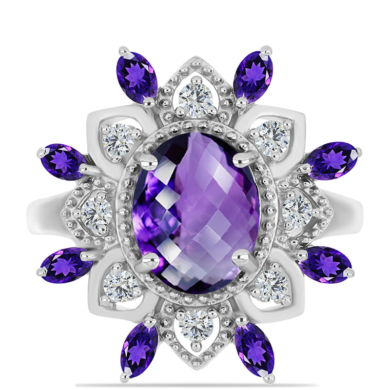 Stříbrný Prsten s Marockým Ametystem a Bílým Topazem