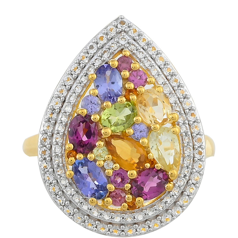 Pozlacený Stříbrný Prsten s Tanzanitem a Rhodolitovým Granátem